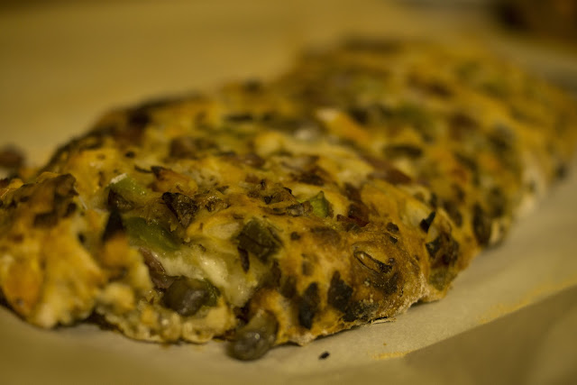 All I can say is wow. I used more than the recommended 1 1/2-2 cups of toppings, but this turned out exactly how I expected it to. I used mushrooms, bell peppers, leftover salami, and sauteed onions and garlic. Dip this baby into a little marinara and call it a night.